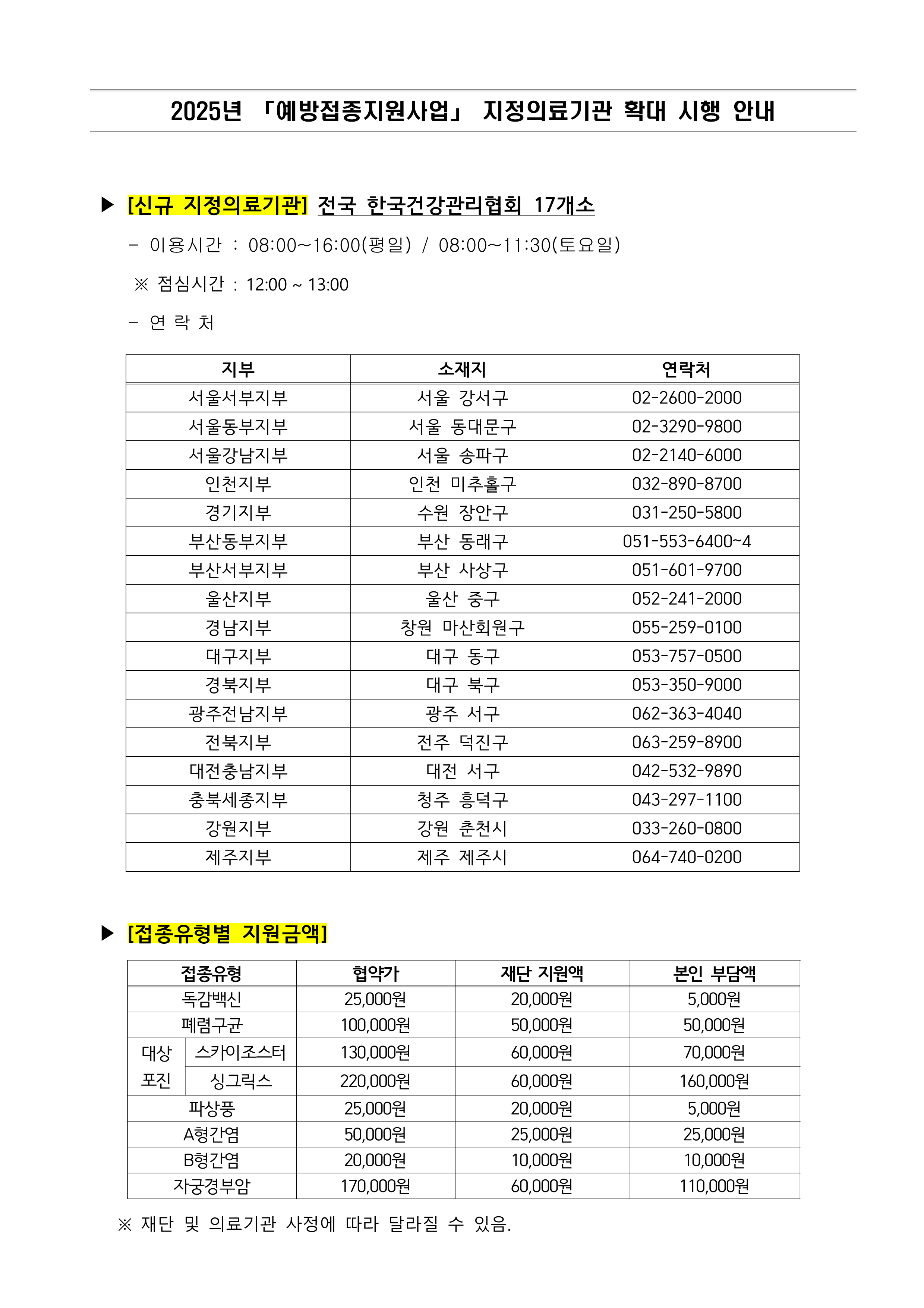 화물복지재단 예방접종지원사업 접종기관 확대 알림
