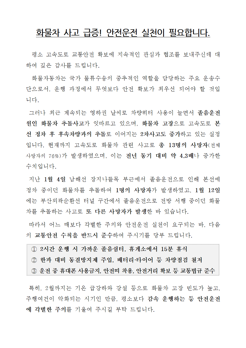 화물자동차 안전운전(교통안전) 캠페인